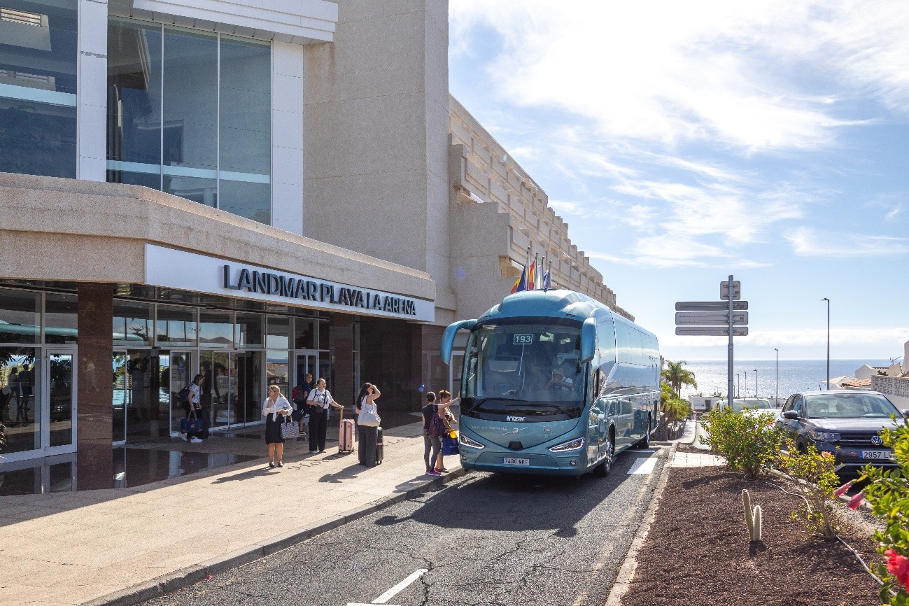 La cadena hotelera Landmar Hotels, con dos establecimientos de 4 estrellas en Playa de La Arena y Los Gigantes, en Santiago del Teide, y asociada a Ashotel, apuesta por la movilidad sostenible de su plantilla y ha puesto en marcha, con transporte colectivo, dos rutas diarias, que trasladan a su puesto de trabajo a 75 profesionales que desempeñan su labor en alguno de estos dos establecimientos. Esta apuesta de movilidad compartida es una réplica del proyecto piloto que Ashotel desplegó en Costa Adeje justo hace un año y que durante 8 meses (hasta final de 2024) dio servicio a varios hoteles de la localidad. El proyecto contribuyó a mejorar la movilidad, los tiempos de traslados y la tranquilidad con la que los trabajadores y trabajadoras acuden a su puesto laboral.